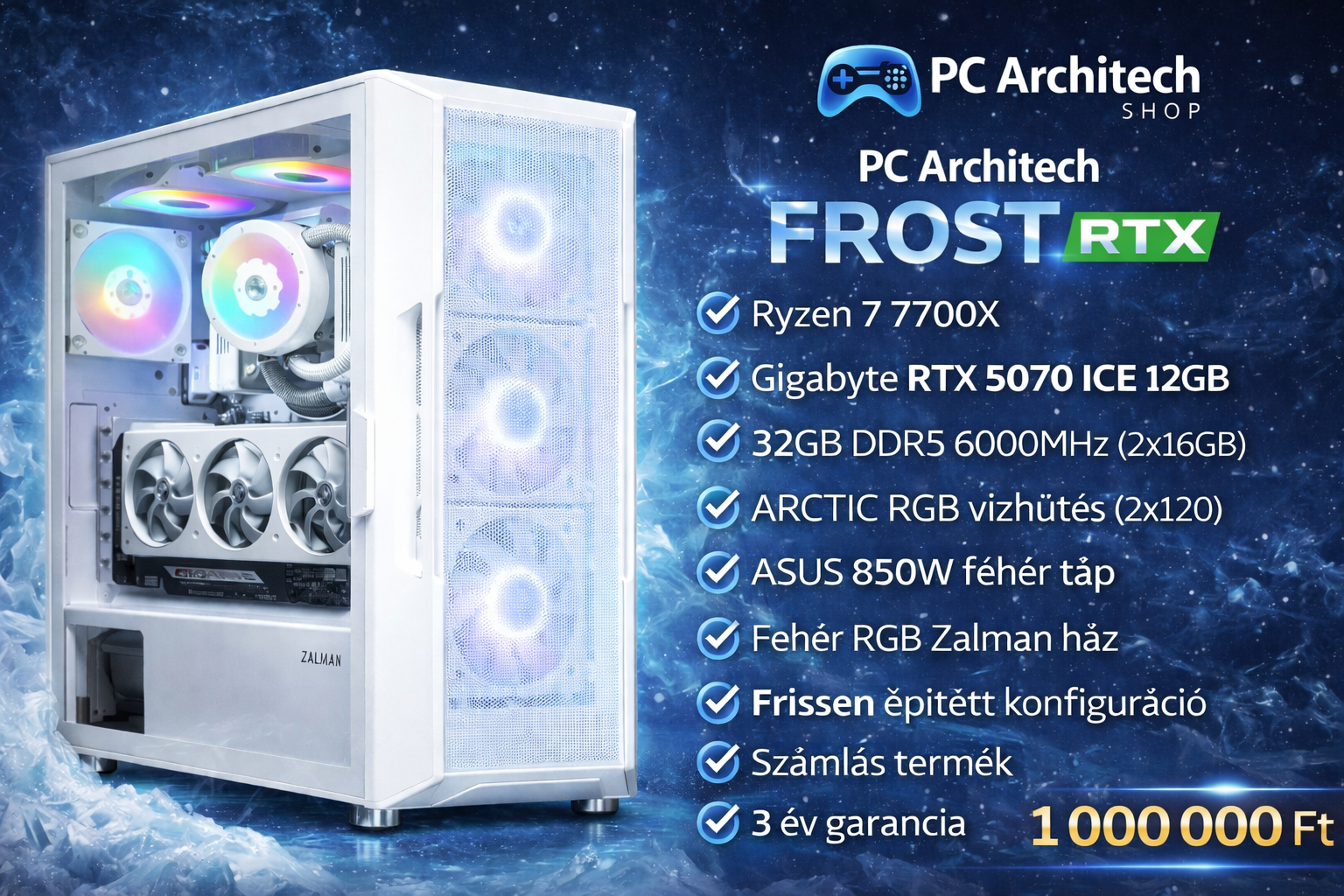 Ház+táp:ZALMAN I3 NEO ARGB White+Asus Prime 850W Gold
